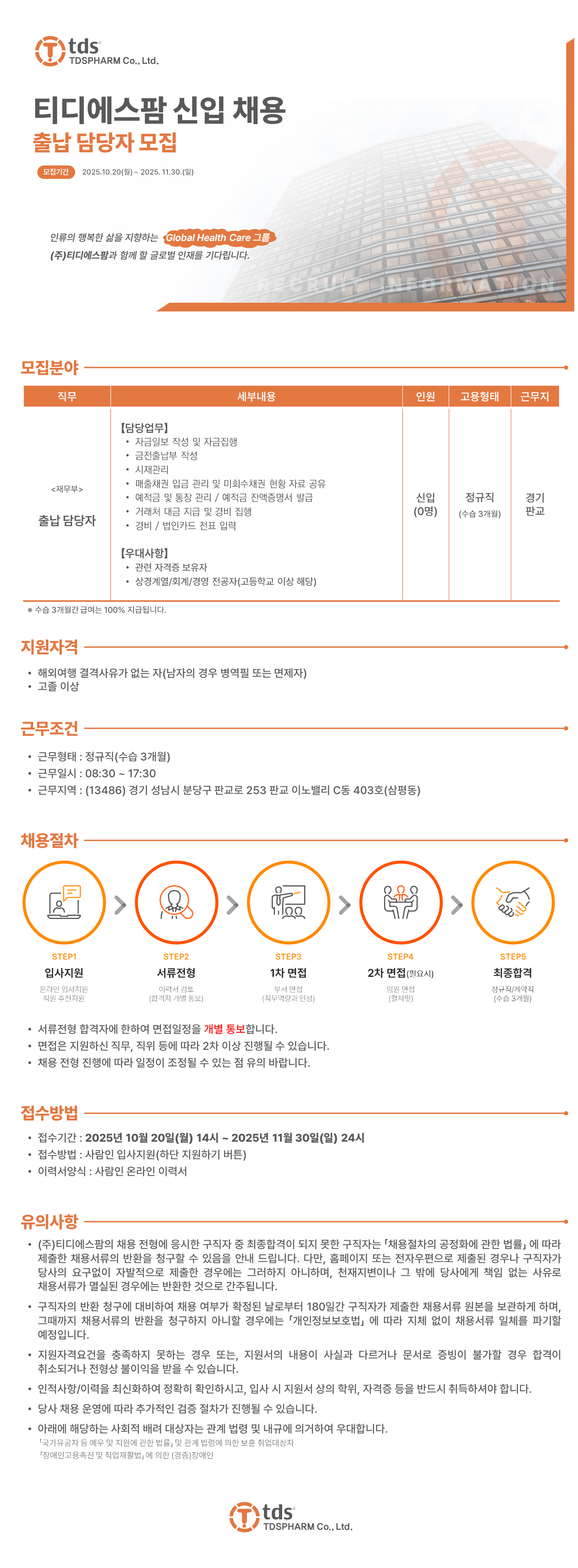 [판교] 재무부 출납 담당자 채용