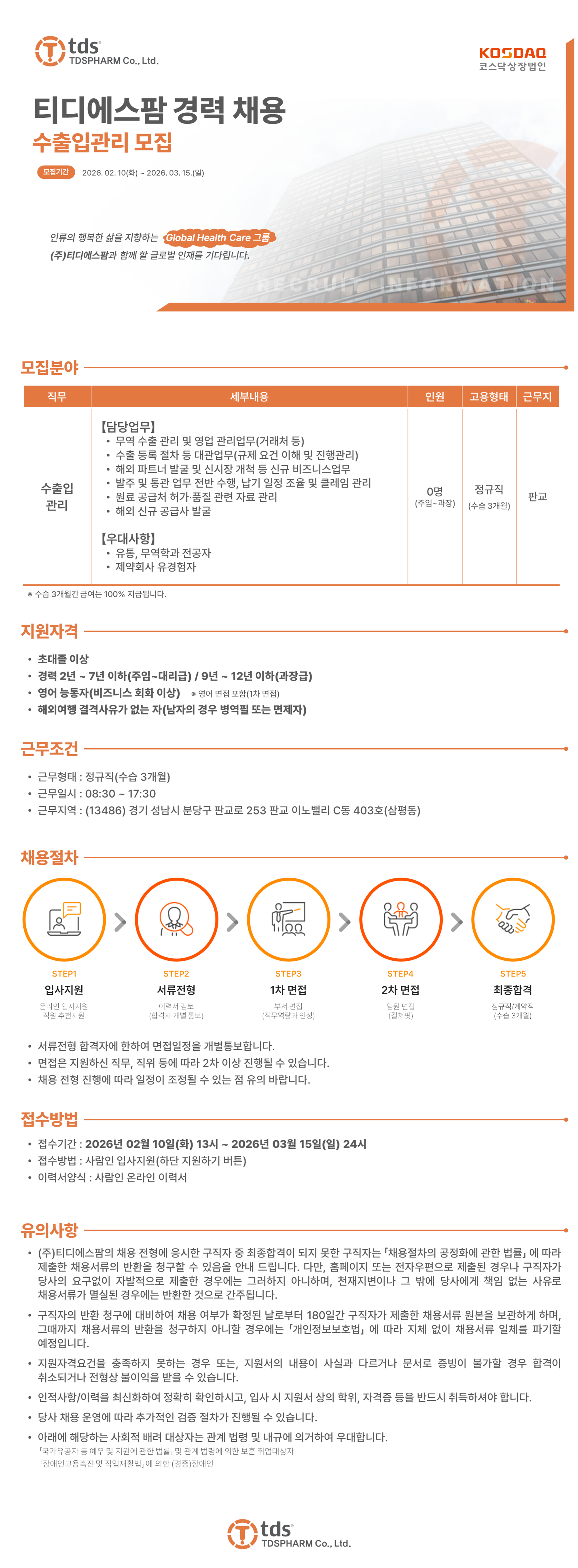 [판교] 수출입관리 경력 채용